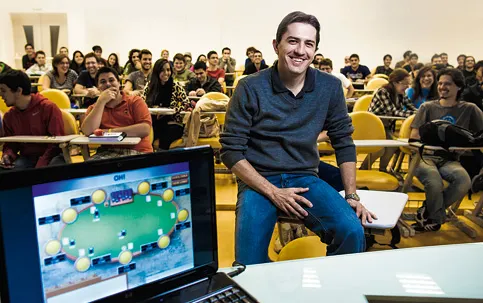 O responsável da disciplina, o matemático Cristiano Torezzan (também ele jogador de poker), explica que a aula é toda ela teórica e que a prática vem no ambiente online com exercícios definidos pelos professores.