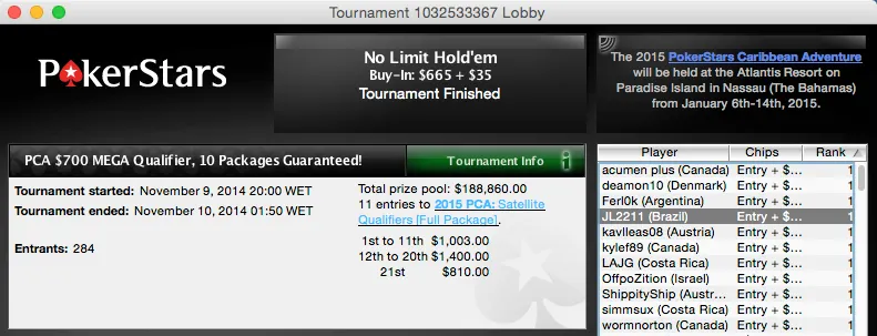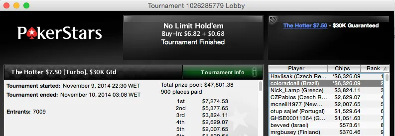O Sunday 2nd Chance também samba na reta final,Bruno "great dant" Volkmann foi vice e juntou mais $30,920 ao seu bankroll.