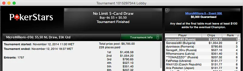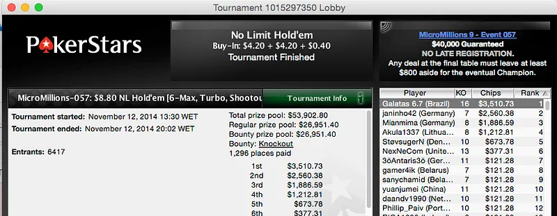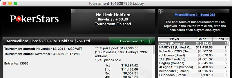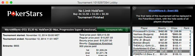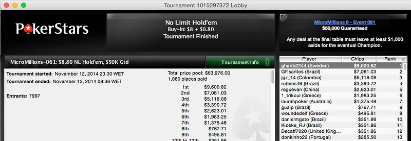 Faltam apenas 3 dias para o final da edição 9 da série de torneios micro da PokerStars, MicroMillions e brasileiros continuam a fazer bonito com alguns resultados interessantes.
