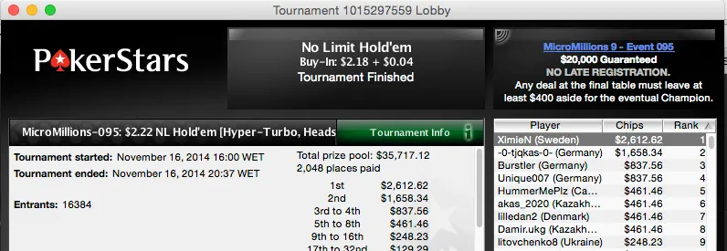 MicroMillions: saviocampos 5º no Evento #91 & ALEbcard 7º no Evento# 97