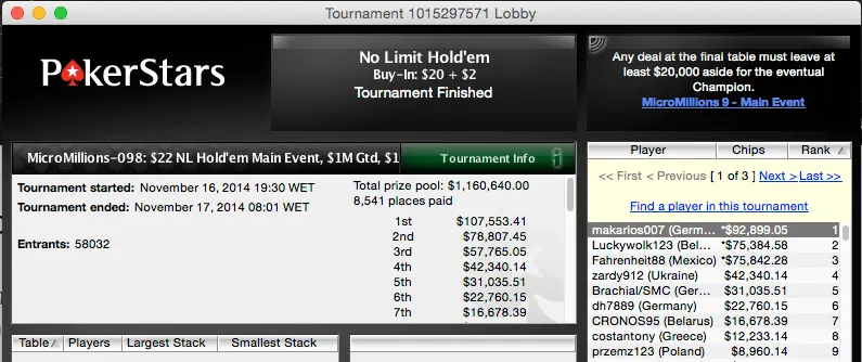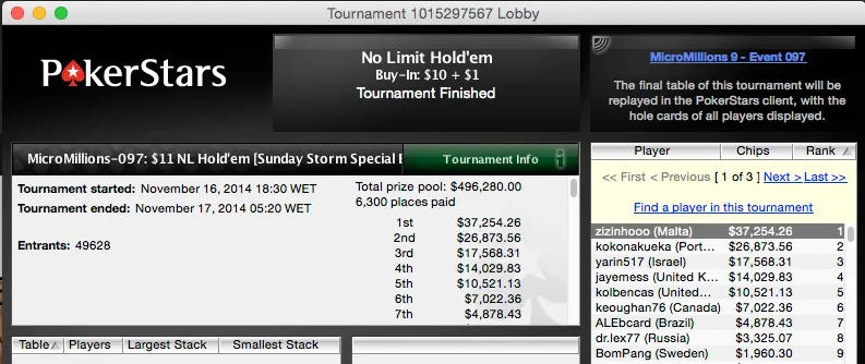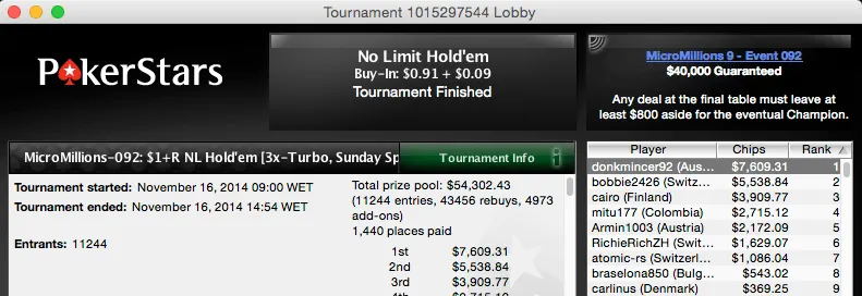 O último dia do MicroMillions no PokerStars foi bem mais fraco que o resto da série, em 11 torneios disputados no dia de ontem o melhor que fizemos foi marcar presença em duas mesas finais.