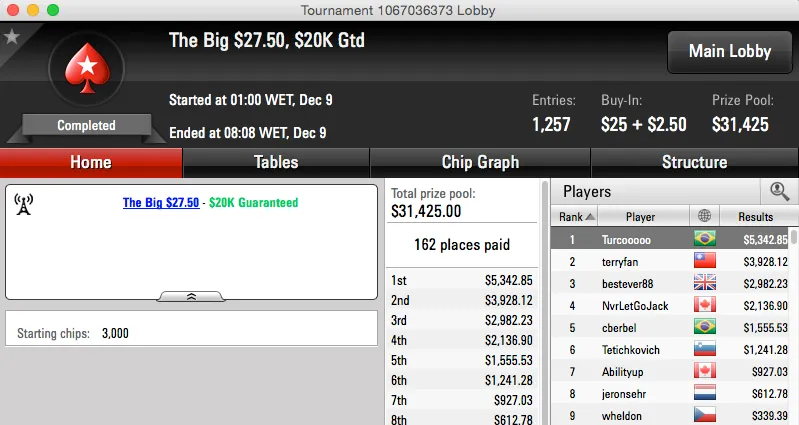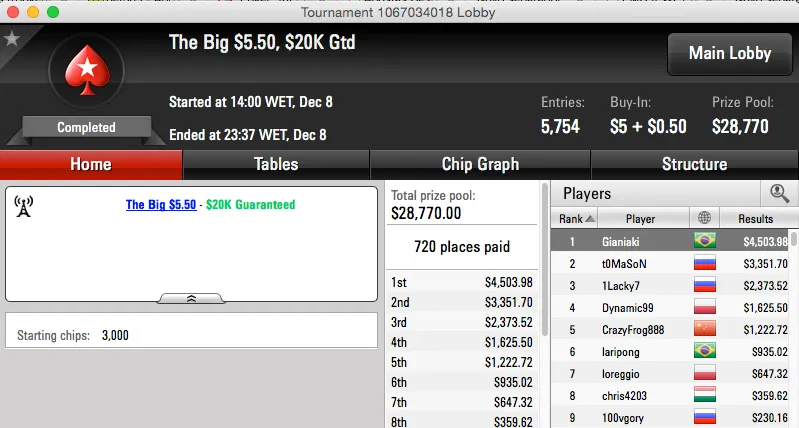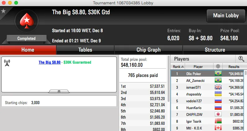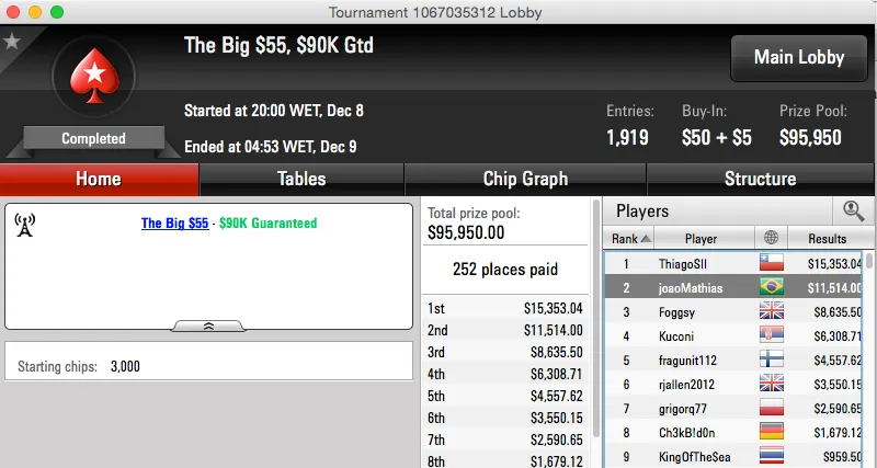 O The Big $162 também teve vice brasileiro,neuri0508 juntou mais $13,364 ao seu bankroll. Ainda num Big, o $55, o ídolo João Mathias foi vice também e tem agora mais $11,514 na sua conta do PokerStars.