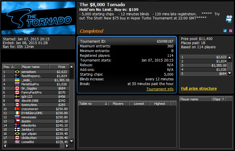 No The Big $75 com 698 participantes tivemos muito perto da vitória. "kopakabritu" foi vice no torneio com US$48,162 de prize pool e levou para a sua conta US$7,187 depois de fazer acordo no heads-up.