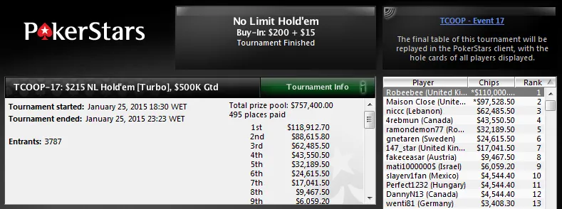 | 23 | $215.00 | TCOOP-23: $215 NL Hold'em [6-Max, Hyper-Turbo], $350K Gtd | 26 Jan | 14:00 | $350,000* | 0 |