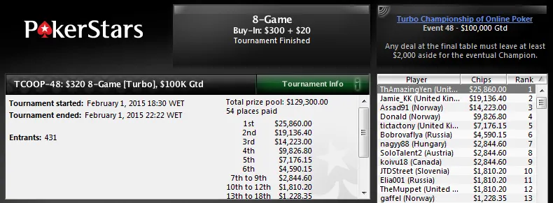 A edição de 2015 do Turbo Championship Of Online Poker chegou ontem ao fim com mais 6 torneios no PokerStars.