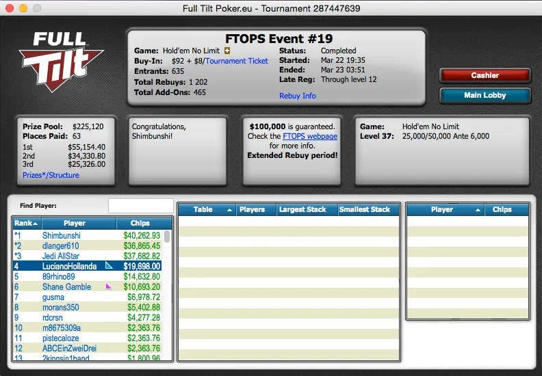 O pódio fecha com a vitória de gusmaa no Sunday 2nd Chance, após fazer acordo heads-up o brasileiro selou a vitória com mais $37,181.