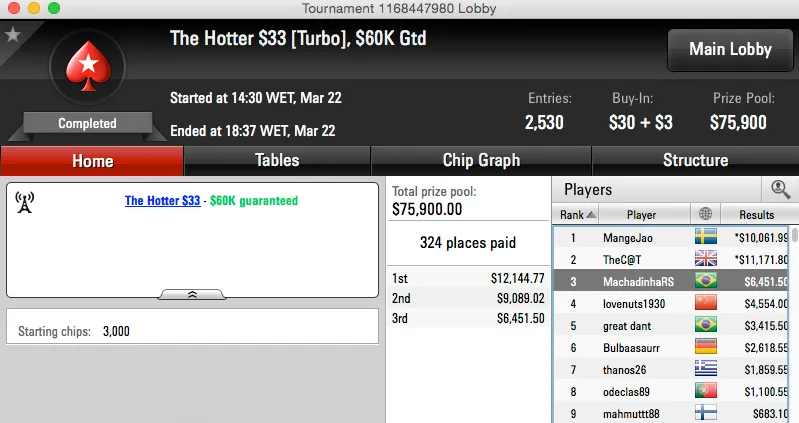 A sessão domingueira foi mais uma vez muito boa para o brasil nos feltros online do PokerStars e Full Tilt.