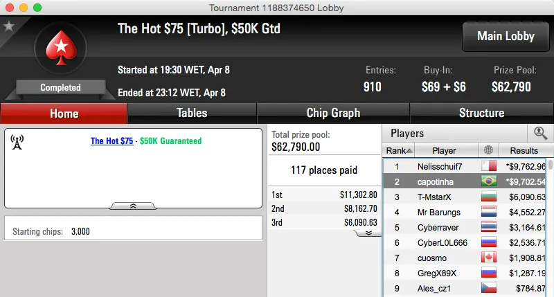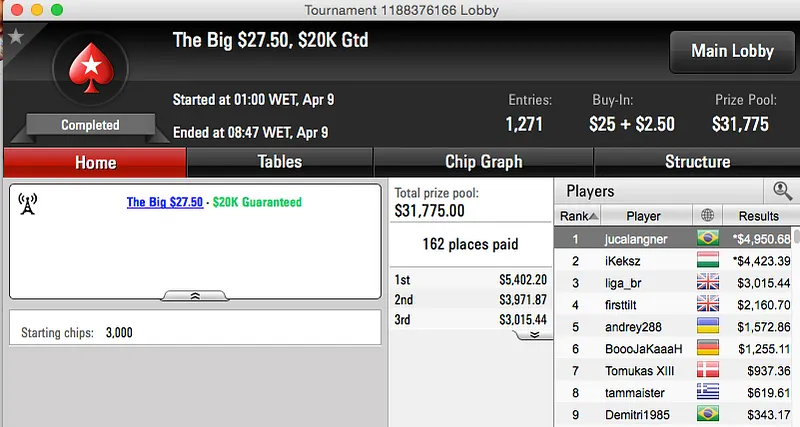 A reta de quarta-feira não foi das mais produtivas mas mesmo assim, já sabemos que os brasileiros nunca deixam de faturar. RafaRemes foi quem se deu melhor na reta de ontem, foi vice no Big $162 e puxou $13,952, sem acordo.