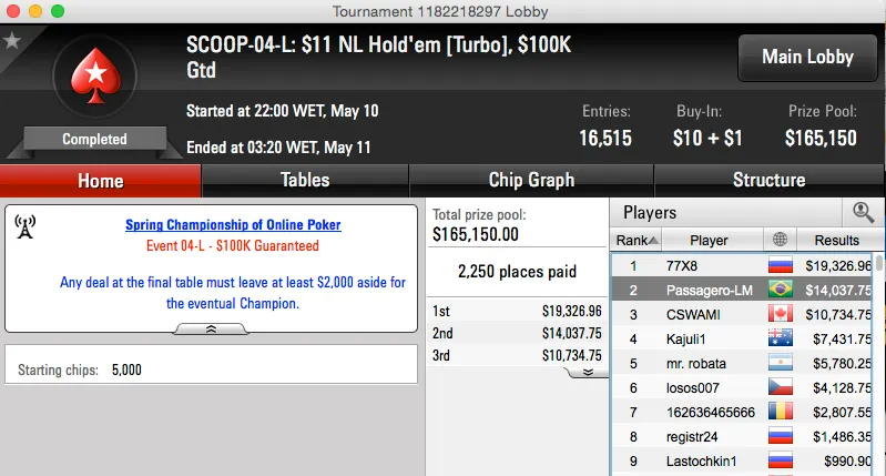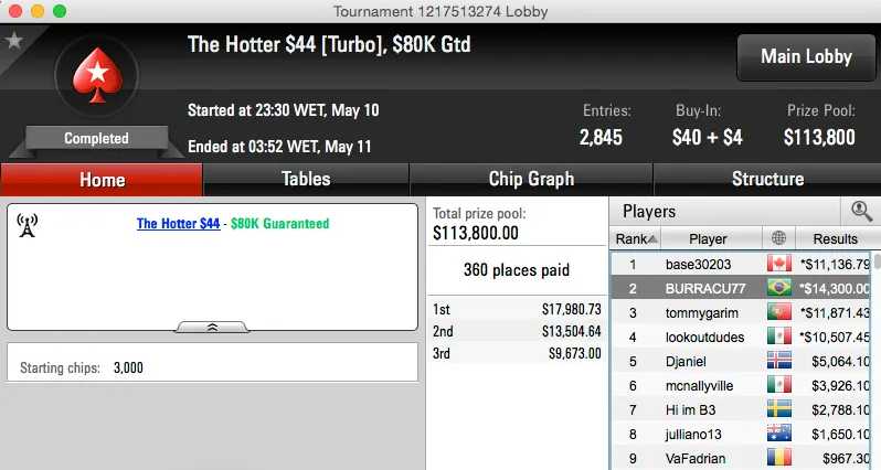 Na mesa final do evento esteve outro jogador brasileiro, kenox_BR foi nono ($2,651).