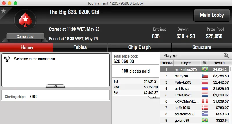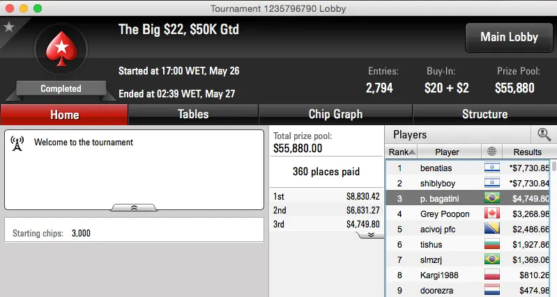 O maior resultado da reta de ontem foi a cravada do The Big $109 do PokerStars ($16,002). Essa mesa final contou ainda com a participação de outro brasileiro, pakada foi terceiro e tem agora mais $8,623 na sua conta.
