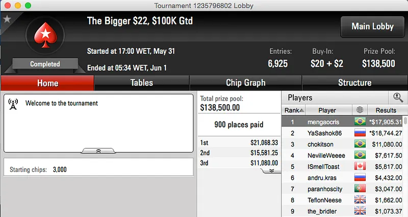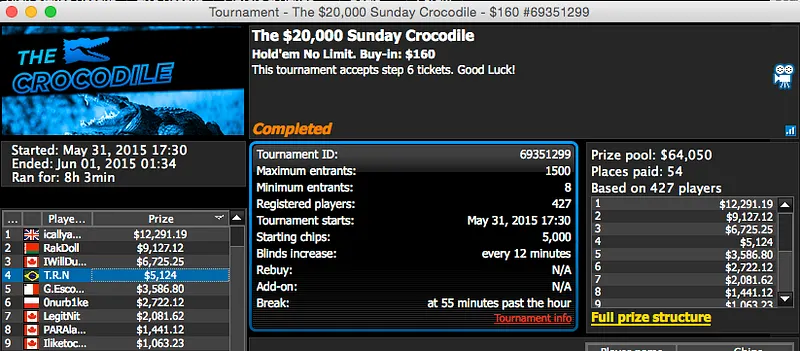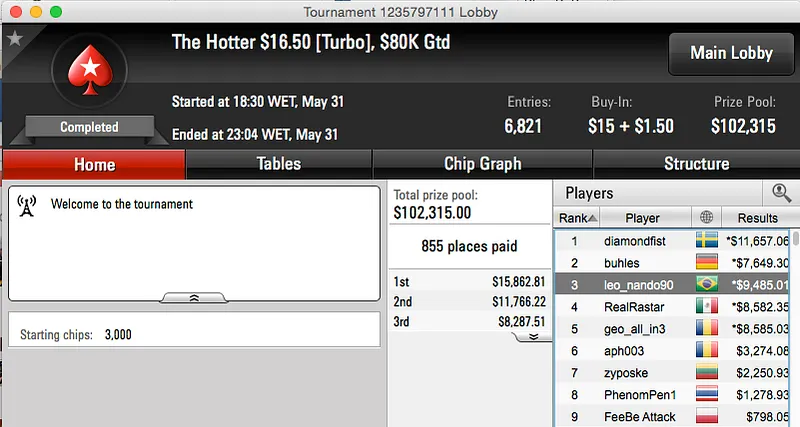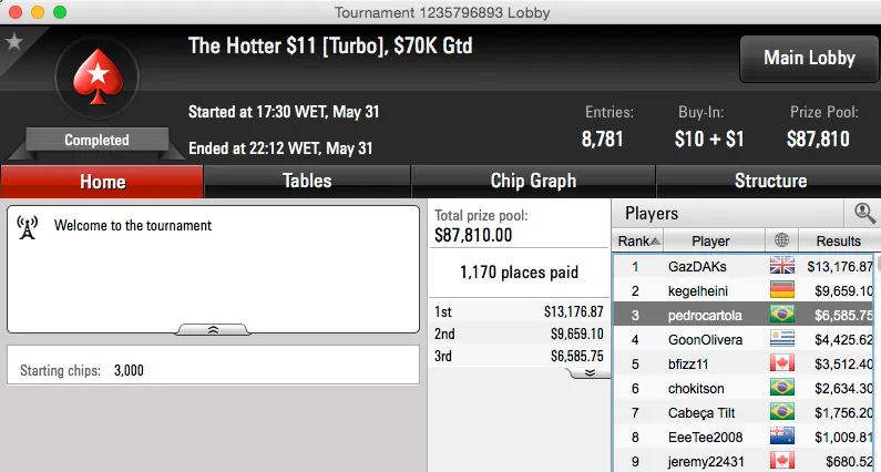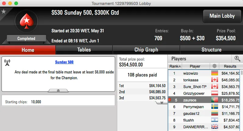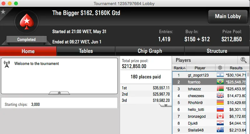 Mas que reta meus senhores, muitos prémios e muito dinheiro vindo na direção do Brasil. Os maiores prémios da reta foram conquistados no Sunday Warm-Up do PokerStars, Dr-Drey15 cravou ($79,000) e BundAA foi vice ($59,355).