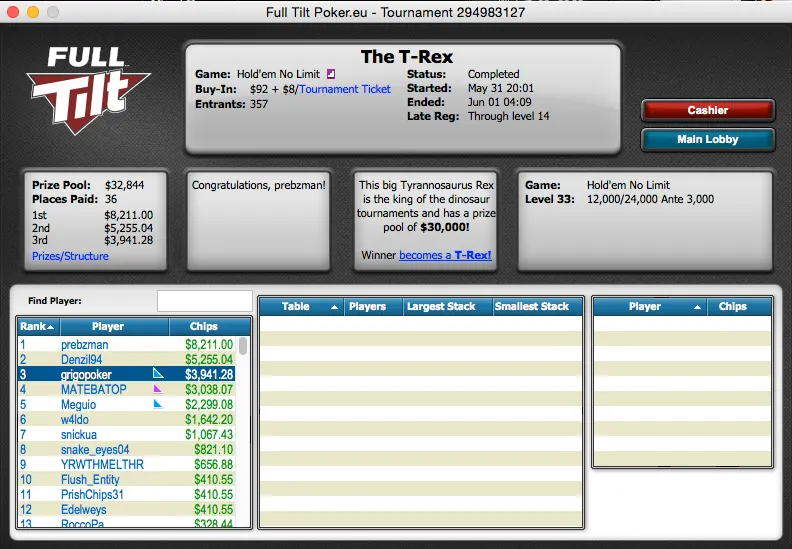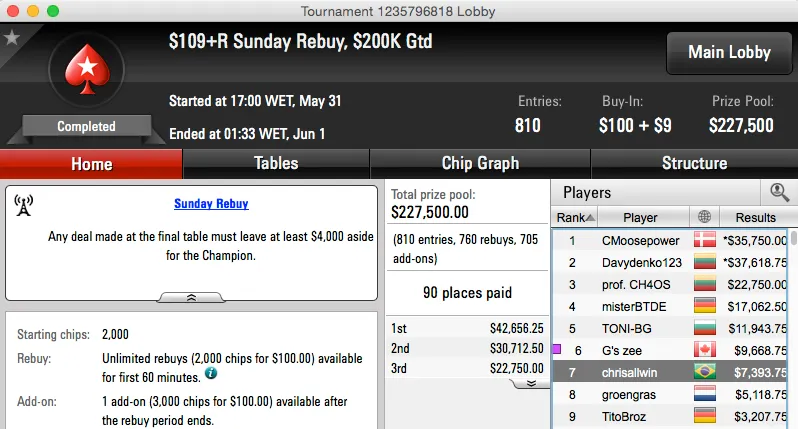 O pódio fecha com a cravada de william.ngt no Sunday Storm, com acordo feito a três, o brasileiro puxou $26,735.
