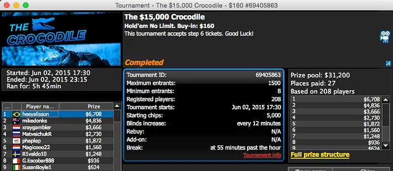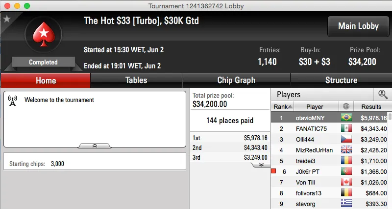 Sem acordo, o brasileiro tem agora mais $14,796 na sua conta do PokerStars.