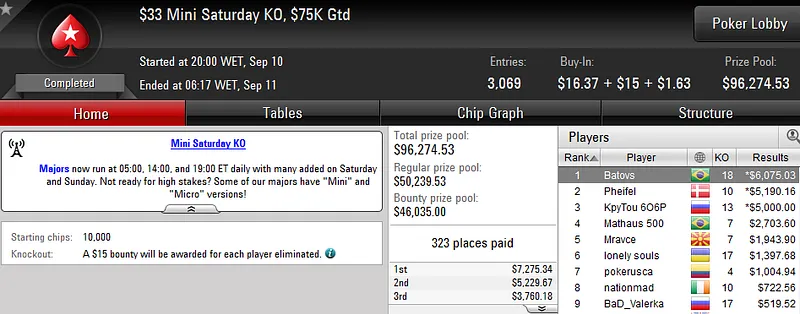 PIUlimeira Crava o $320 Saturday KO (US$26,344) & Mais Forras Online