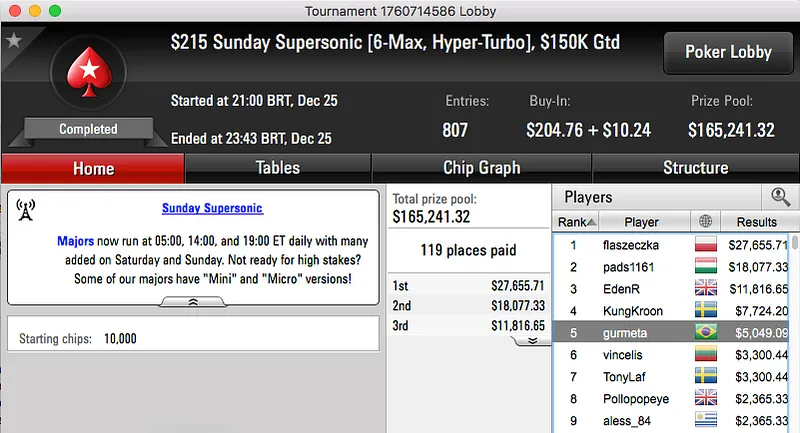 João Simão fica com a prata de natal, o vice no $109 Sunday Cooldown viu o brasileiro chegar no heads-up e fazer acordo com o colombiano Mayu "marroca5" Roca. Simão acabou ficando em segundo e recebeu $13,667.