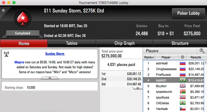 Na mesa final esteve outro brasileiro, casslima foi quinto e ganhou $4,818.