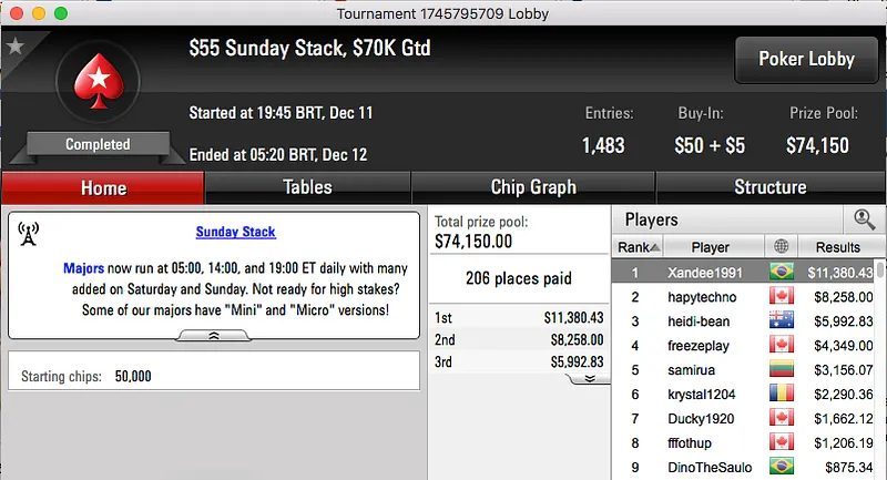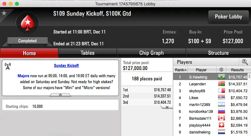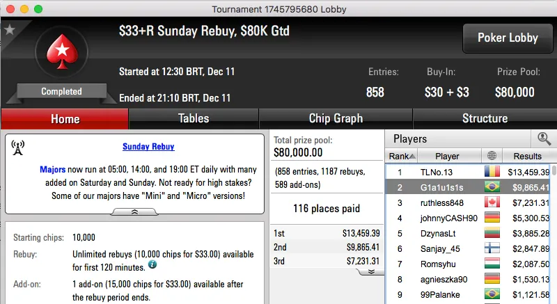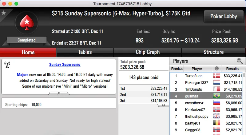 Heartthrob10 (3º) e Guilherme Cheveau (5º) na FT do Sunday Million & Mais
