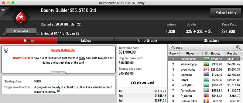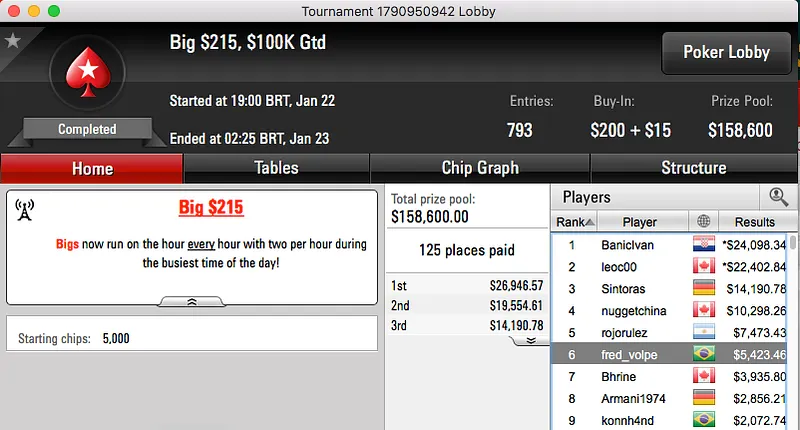 O pódio fecha com o vice de Fábio Maritan no Big $55, após deal heads-up ficou com mais $16,942 na sua conta do PS.