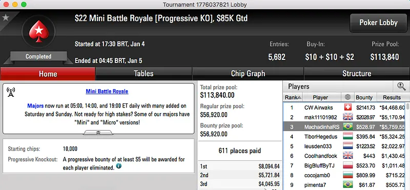 Renan Carlos Bruschi foi o brasileiro que alcançou o maior resultado ($) na reta de quarta-feira do PokerStars.