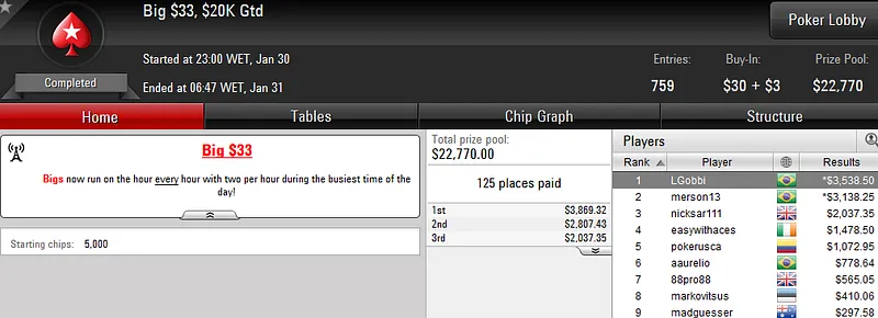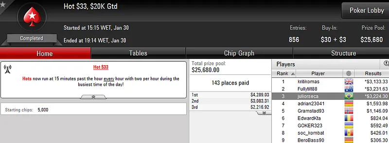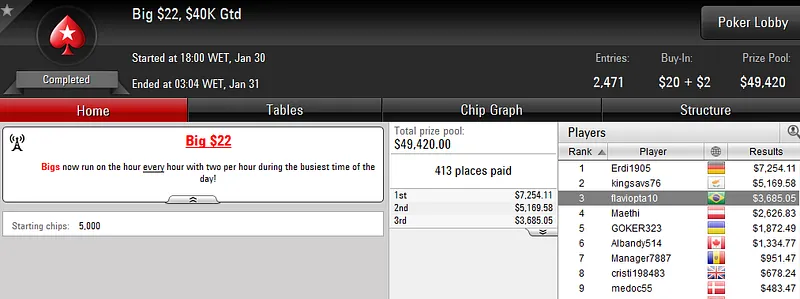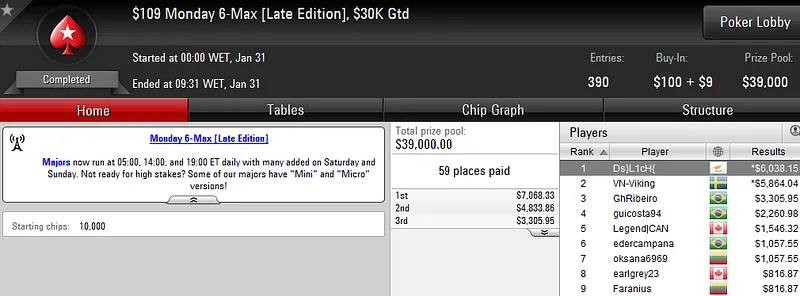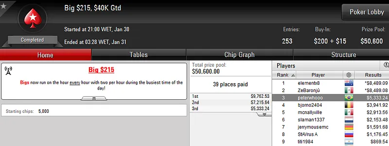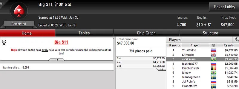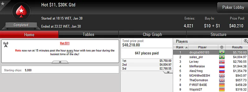 O grande vencedor da reta de ontem, foi sem duvida, "thipoker10"! O jogador brasuca conquistou dois dos maiores torneios regulares do PokerStars e encaixou US$20,687.