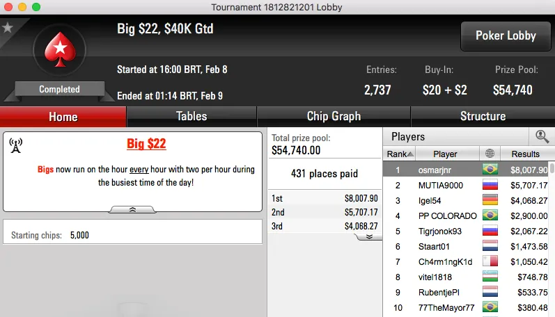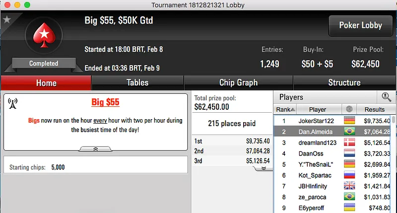 Na mesma mesa final estiveram ainda dennysramos2 (9- $1,993) e Guilherme “teruliro” Beavis (7- $2,725).