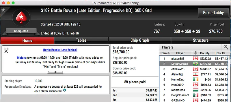 O bronze foi para outra cravada, CFAlmeida foi o melhor no $22 Mini Battle Royale, depois de chegar a acordo 3-handed garantiu $10.468.