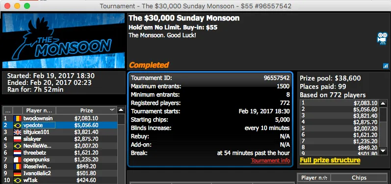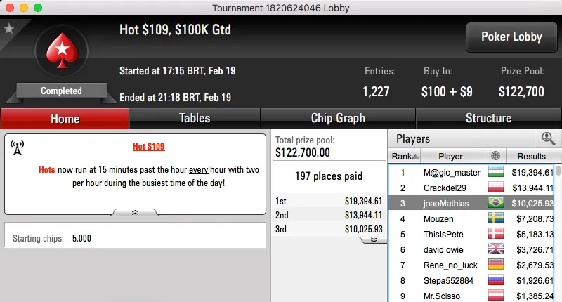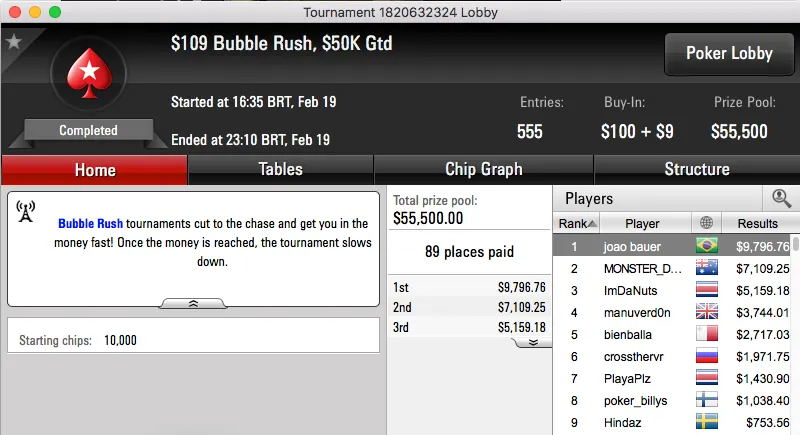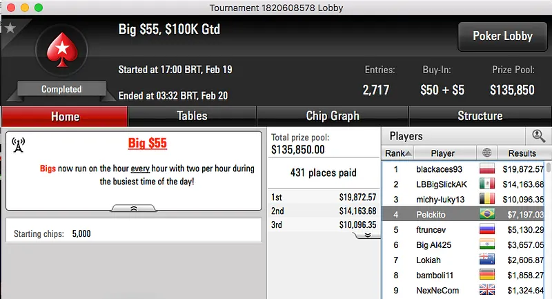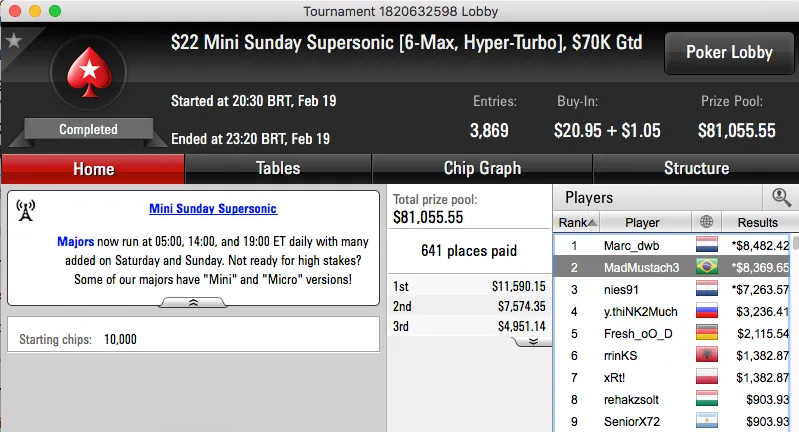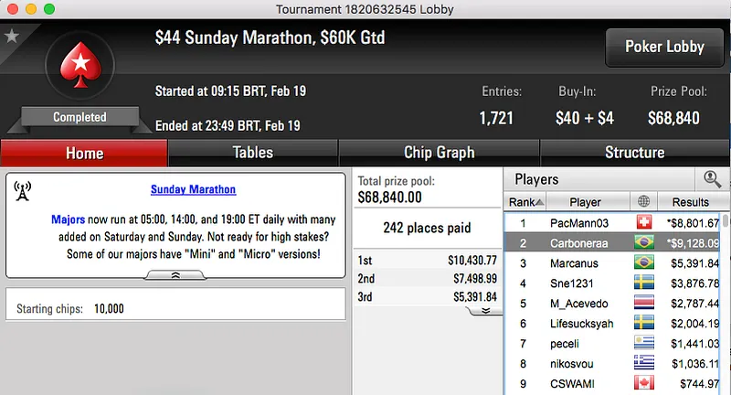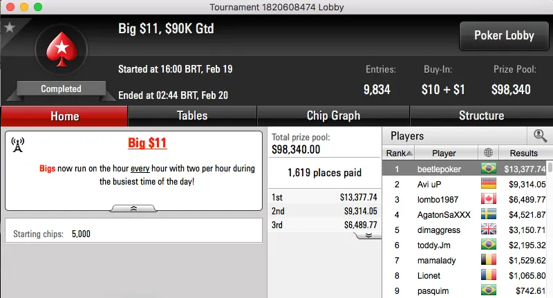 betorjbrazil também esteve em bom plano e cravou o sempre duro Sunday Storm de $11, o torneio contou com a participação de 29,623. A vitória valeu um prémio de $29,994 para o carioca.