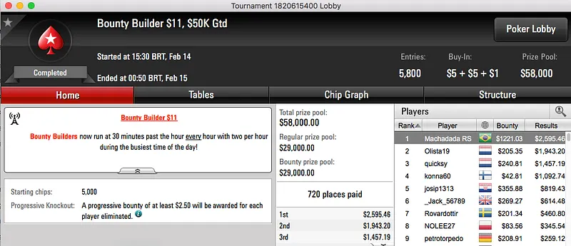 No 888poker foi vice no $600 The Volcano, puxou $10,853. No Partypoker foi o melhor no $109 The Uppercut e juntou mais $8,083 à sua banca. Por último, no PokerStars foi bronze no $215 Fat Tuesday e agarrou mais $8,323.