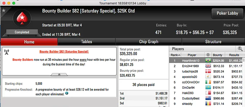 A reta e sábado assistiu a um grande resultado de Guilherme "teruliro" Beavis. O jogador do 4 Bet Team cravou o Bounty Builder $215 e juntou $15,680 à sua banca no PokerStars.