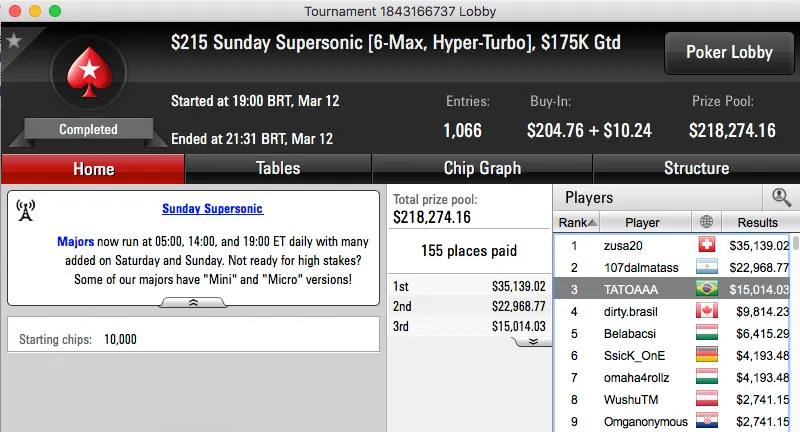 Um dos que mais se destacou foi João Mathias, jogando no Partypoker com o nickname TDurdenWAR, Mathias esteve muito forte nos torneios high roller de $530.