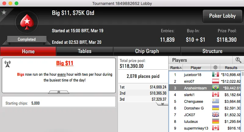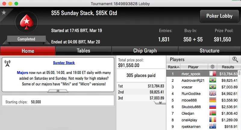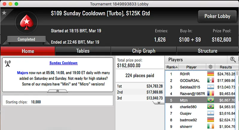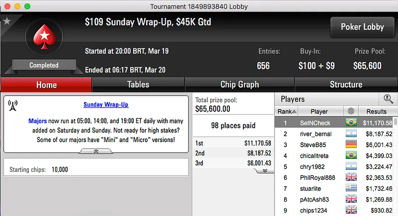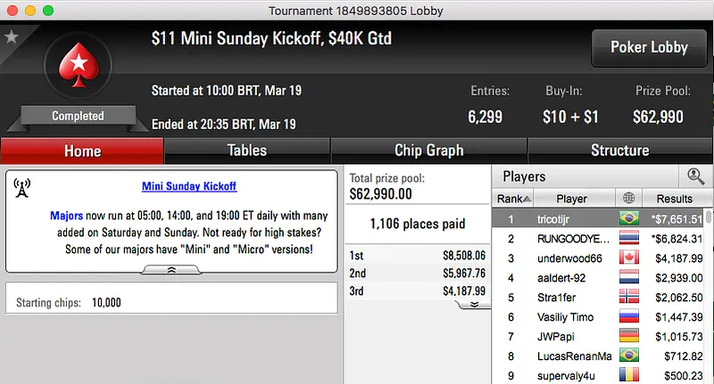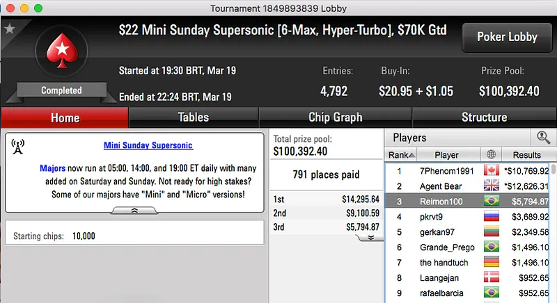 A prata da reta fica para Kenshizinho, a sexta colocação no Sunday Million valeu $26,368. Na mesa final estiveram mais dois brasileiros, confira: