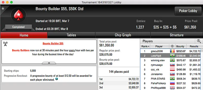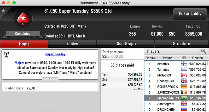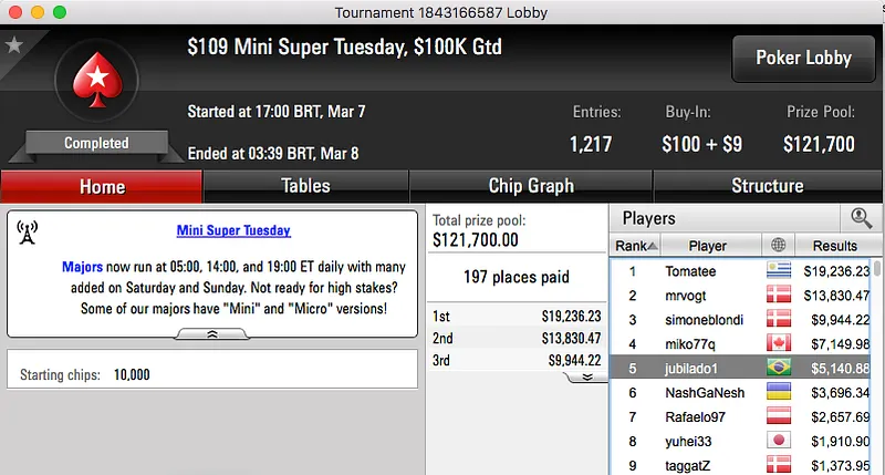 Rodrigo "SELOUAN1991" Selouan Cravou $215 Fat Tuesday ($13,504) & Mais