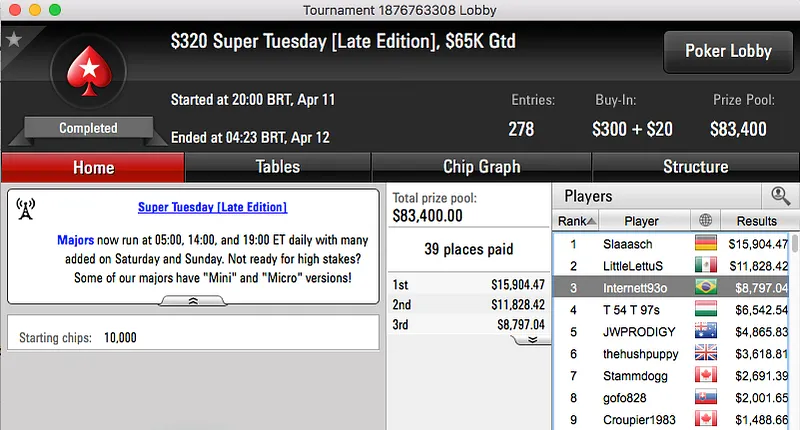 João Mathias 4º no Super Tuesday do PokerStars ($26k) & Mais