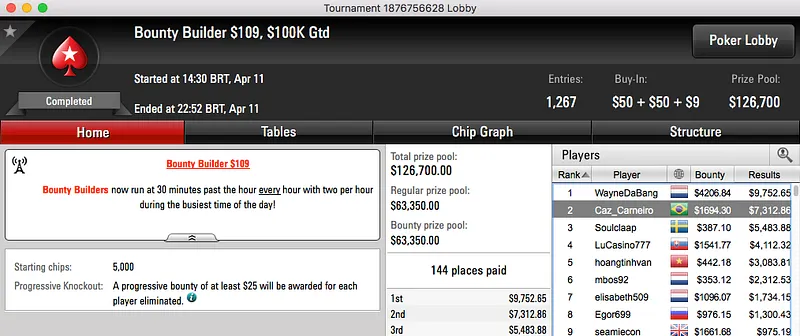 Mathias foi quarto classificado e puxou $29,651, A vitória acabou por ficar para o português Rui Sousa que bateu Mortan23 em heads-up.