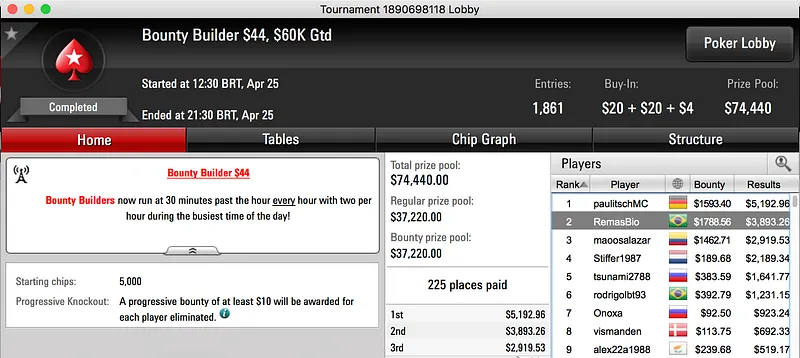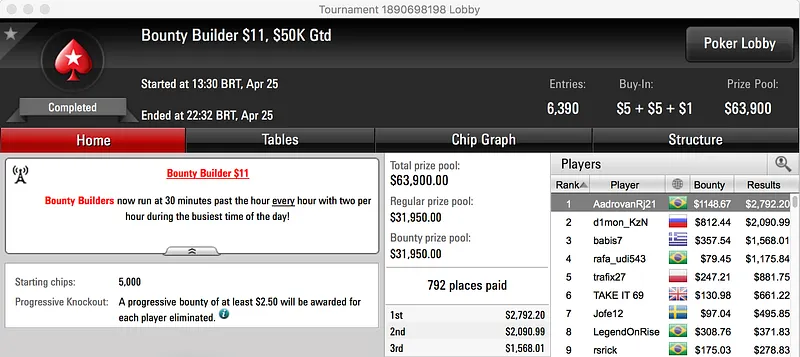 Por último, encerramos o pódio com os $7,777 que andredos puxou no Big $109, foi vice. Na mesa final esteve também o brasileiro pedroblakk (5- $2,975).
