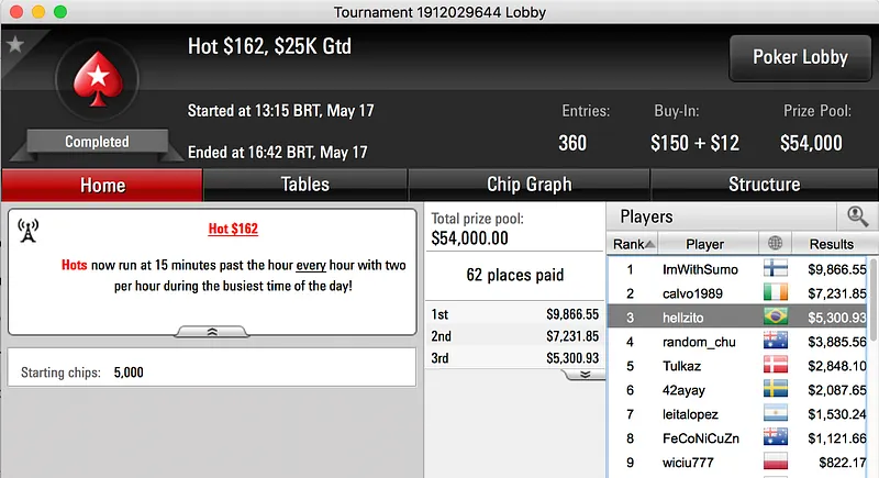 O resto do pódio fica completo com os dois primeiros lugares do Hot $215, Leo Burges ($13.886) e Dani aziz ($10.178) fizeram heads-up e não chegaram a acordo, o título veio na mesma para o Brasil.