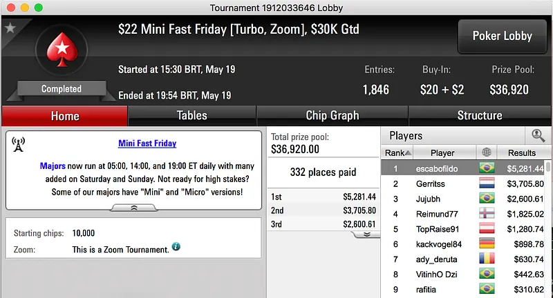 Fabiano Kovalski voltou a ser o melhor brasileiro da reta dos regulares do PokerStars nesta sexta-feira, o vice no $215 Fast Friday rendeu $12.737.