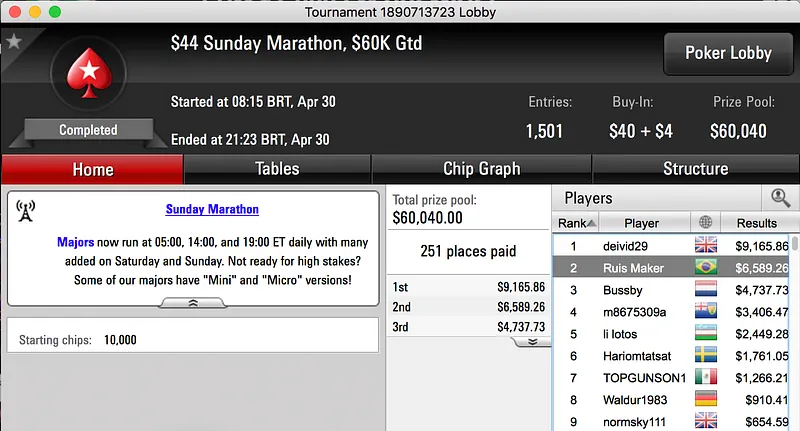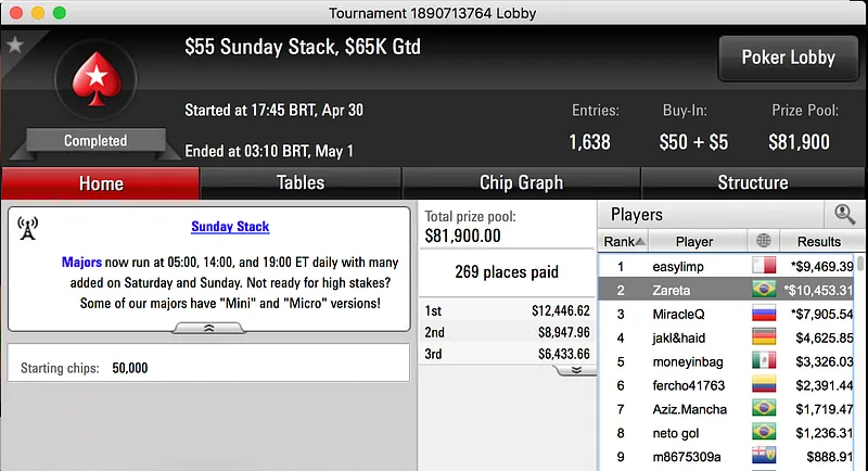 iveydoagrest foi o maior vencedor da reta de domingo do PokerStars