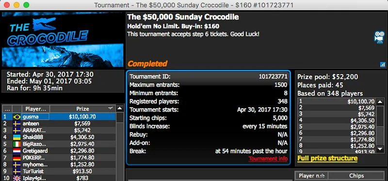 A prata foi entregue a pgmota, o bronze no $11 Sunday Storm rendeu $14,353. Em sexto lugar ficou Jorge Breda, puxou $5,189.