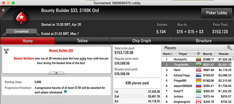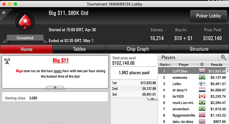 iveydoagrest foi o maior vencedor da reta de domingo do PokerStars. O brasileiro foi vice no Big $55 e puxou $15,500 após acordo heads-up. Na mesa final estiveram mais dois jogadores brasileiros, confira: