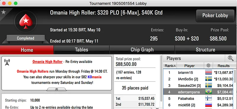Por último, o pódio fecha com o vice de Arnoldi02 no Bounty Builder $215, rendeu $11.651.