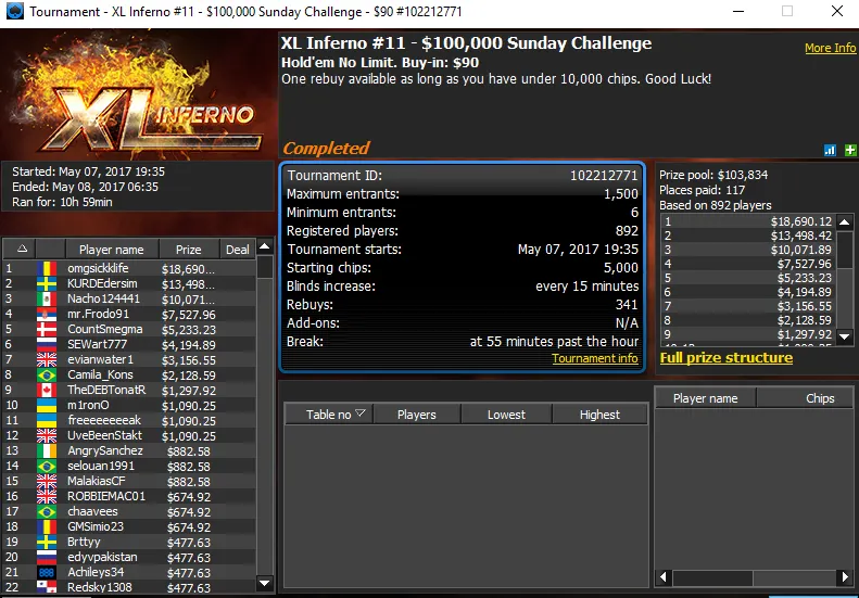 Xandee1991 Crava XL Inferno #7 no 888poker (US$53,014) & Mais