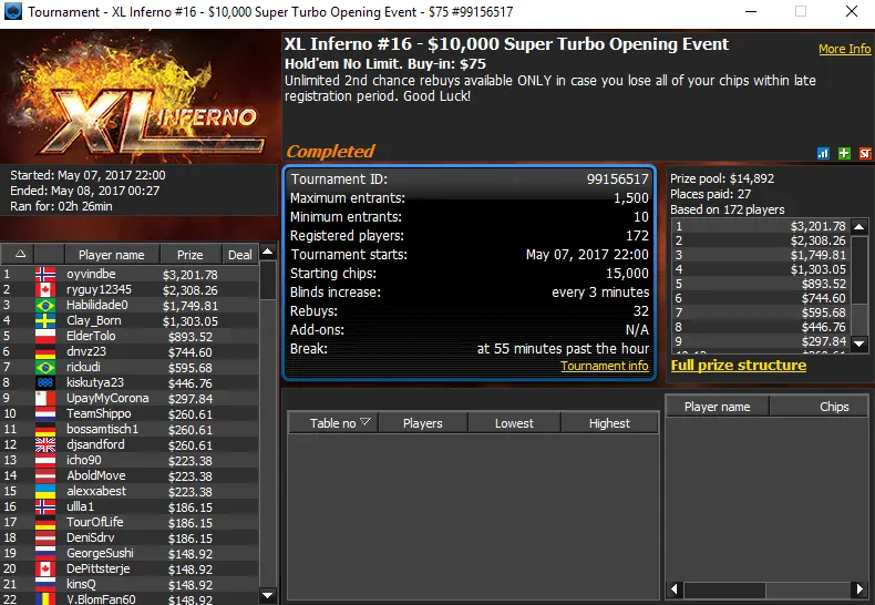 As XL Séries do 888poker começaram da melhor forma para o Brasil. Ontem foram disputados os primeiros 16 torneios do XL Inferno e Xandee1991 cravou um desses eventos.