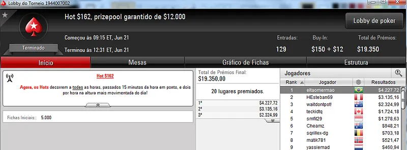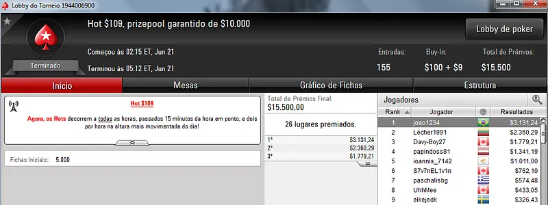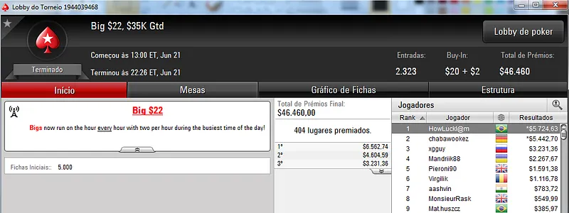 Quem também andou aprontando nos feltros online foi Yago “yhsimplicio” Simplicio que terminou o $215 Battle Royale com 1,074 participantes na terceira colocação. O prize pool chegou aos $214,800 e para o jogador brasileiros voaram $11,478.