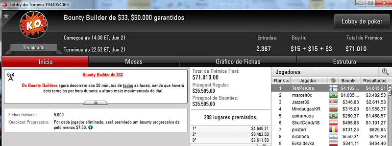 Danilo Baeza Crava Bounty Builder $109 e Yago Simplicio Forra Pesado no $215 Battle Royale & Mais