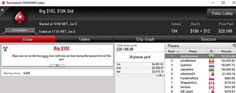 Amauri410 também soltou o grito no Bounty Builder $162 com 338 participantes. O prize pool chegou aos US$50,700 e para o jogador verde e amarelo voaram US$8,492!