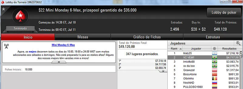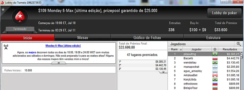 Segunda-feira também foi dia de poker online e o Brasil voltou a trazer bons resultados nos panos virtuais do PokerStars.