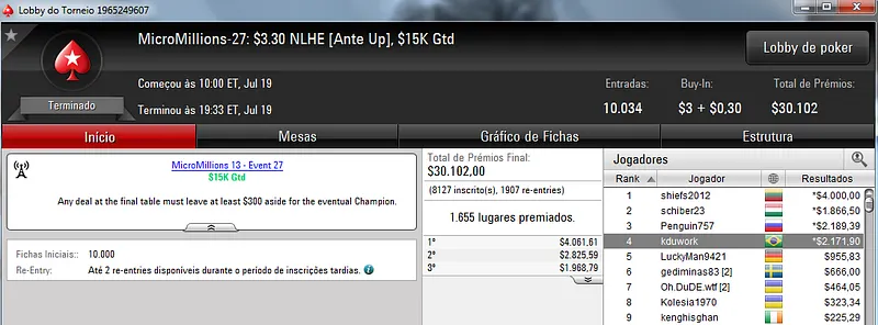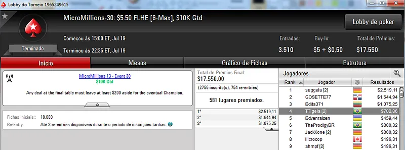 O Brasil consegue mais um título na série de torneios online MicroMillions. Esta série de torneios feita a pensar nos jogadores mais inexperientes tem premiado vários jogadores brasucas.