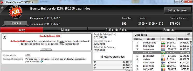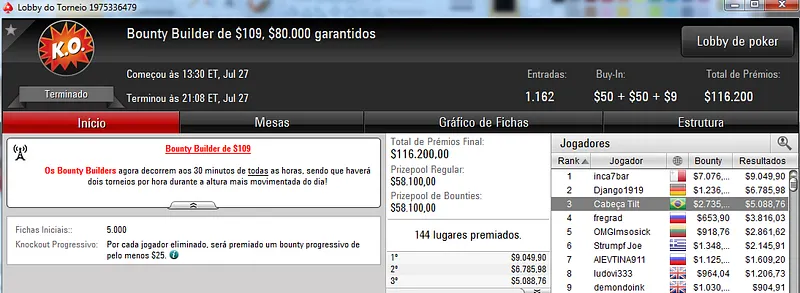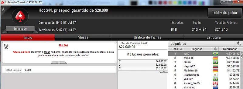 Quem também se deu bem na reta de ontem foi Rafael "LiroLa" Monteiro que chegou na terceira colocação do $109 Mini Thurday e recebeu $8,014 de premiação.