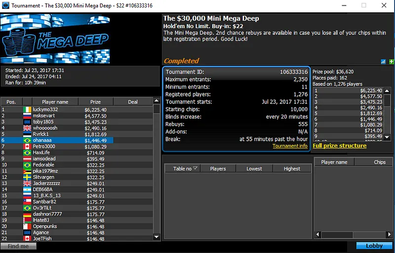 Quem também se deu bem nesta reta foi Pedro "gusma" Madeira que caiu na 7ª colocação do The $120,000 Whale e forrou $6,375 de premiação.
